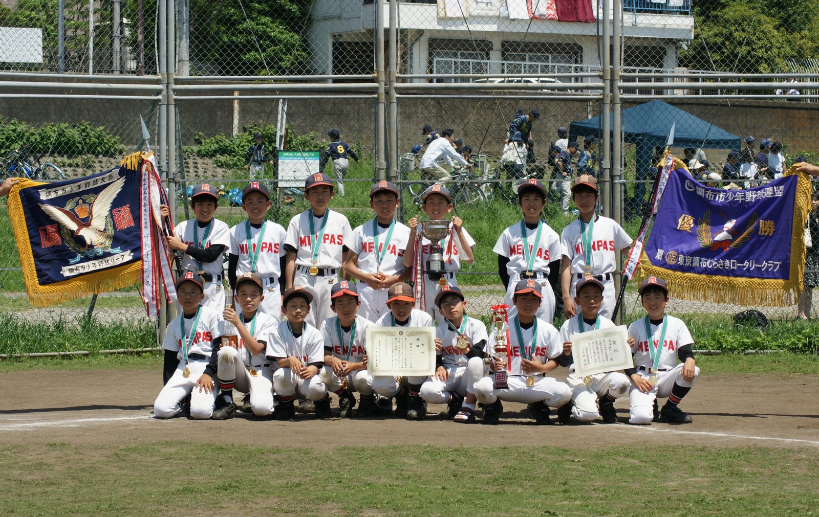 公式戦記録 第32回調布市春季大会〜Aクラス、歓喜の優勝!! 2008/05/21 CHOFU_MENPAS コメントする 試合日程と戦績 3/23(日) VS サレジオフェニックス 結果:○(5×3) 3/23(日) VS 調布ファイターズ 結果:○(11×4) 3/30(日) VS 緑ヶ丘ジャイアンツ 結果:○(4×2) 4/ 6(日) VS 杉森クラブ 結果:○(2×1) 4/19(土) VS TOHOパイレーツ 結果:○(23×1) 4/20(日) VS サンライズ 結果:○(7×5) 4/29(火・祝) VS 調布ディアーズ 結果:×(8×9) 5/ 4(日) VS 調布ウィングス 結果:○(5×4) Facebook で共有するにはクリックしてください (新しいウィンドウで開きます) Facebook クリックして X で共有 (新しいウィンドウで開きます) X いいね 読み込み中…