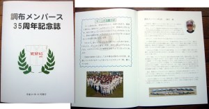 懇親会参加者には、メンパース・ユニフォーム型キーホルダーと35周年記念誌が配られました。都合で来