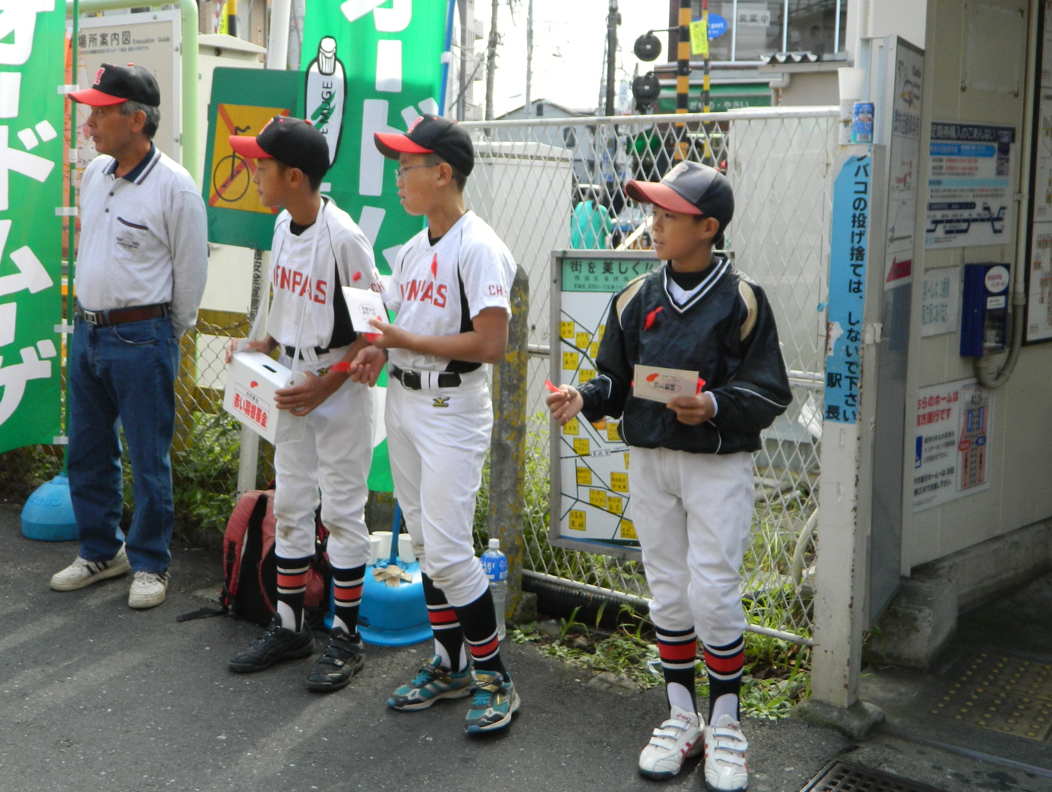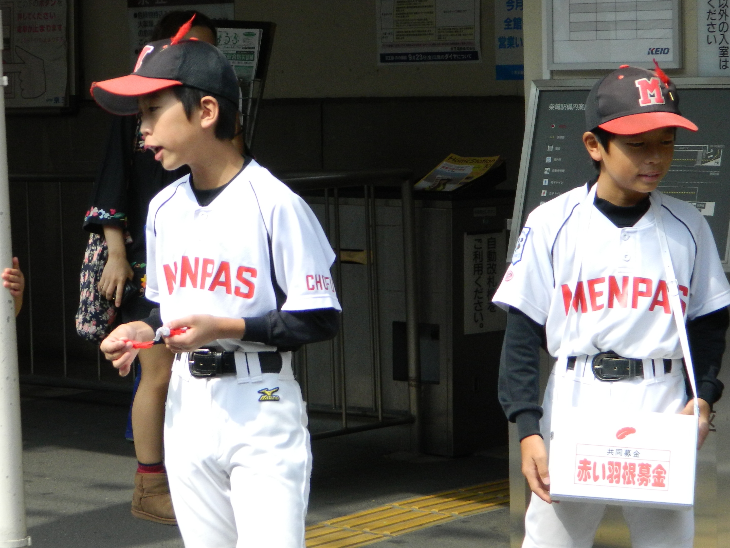 Aチームが秋の赤い羽募金に参加しました。土曜日午前中の柴崎駅は、下車する人は疎らで、乗車する人も急ぎ足で時間に余裕がなさそう。それでも選手は皆、大きな声を張り上げ、元気よく募金活動を行いました。
