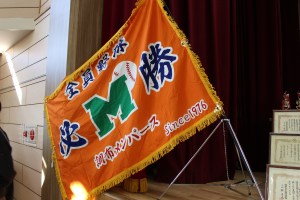 卒団生からチームの記念品として、コンパクトで持ち運びが便利なトスバッティングなどで使えるネットが贈られました。ちょっとした、時間や場所があれば、少しでも練習ができるので有効に活用してください。