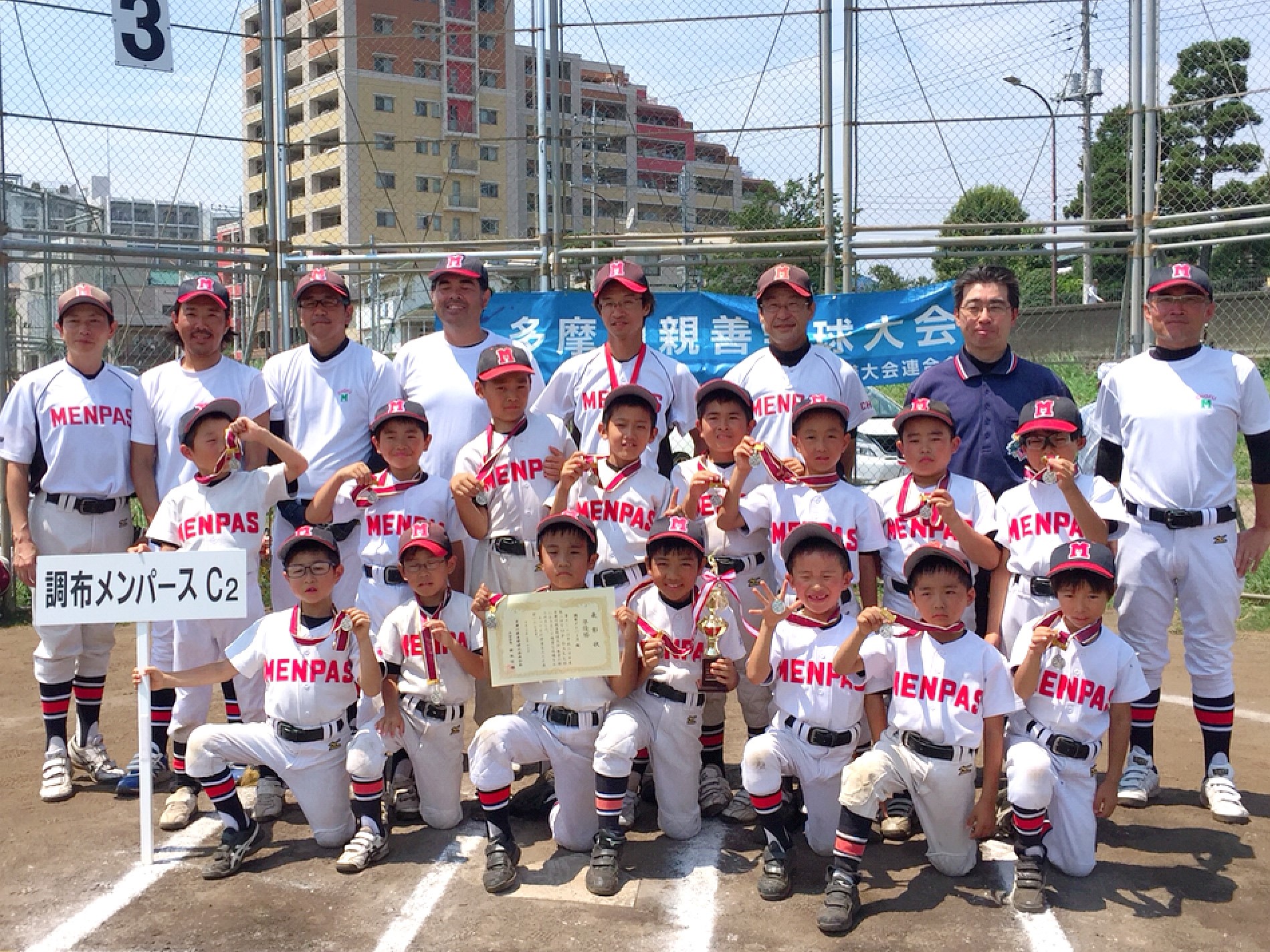 公式戦記録 2018年 TOP BALL杯 教育クラスの部で C2チームが準優勝! 2018/07/22 CHOFU_MENPAS コメントする 調布市、狛江市、多摩市、三鷹市の4市のチームが参加する TOP BALL 杯多摩川親善野球大会教育クラスの部(小学3年生以下の部)で、メンパース C2 チームが準優勝しました! 暑い天候の下、準決勝は延長戦となり、小学生低学年とは思えない激闘を繰り広げました。周りに感動を呼ぶ思い出に残る大会となりました。 Facebook で共有するにはクリックしてください (新しいウィンドウで開きます) Facebook クリックして X で共有 (新しいウィンドウで開きます) X いいね 読み込み中…