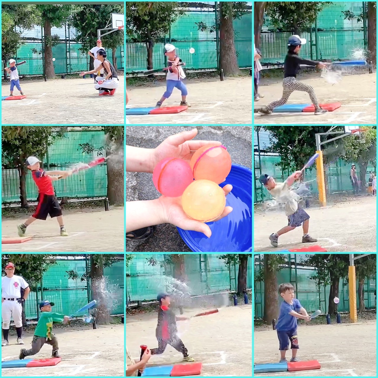 木陰での活動、子供達への散水、こまめな休憩と水分補給 等々、熱中症対策も万全にしながら、大人気の水風船バッティングを楽しんでもらいました!