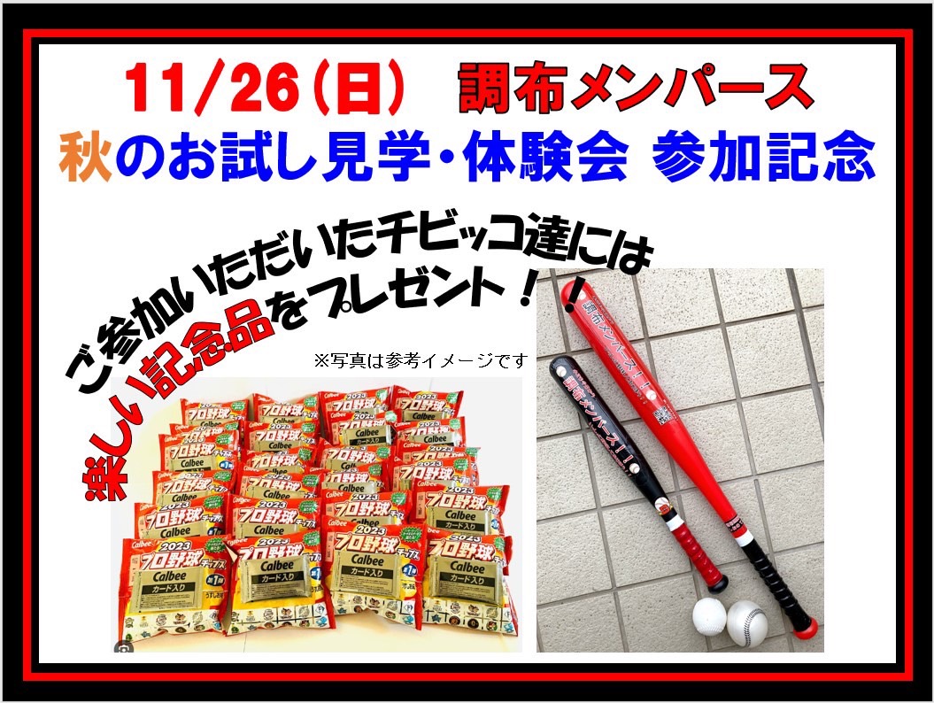 お知らせ 年長さん〜小学3年生向け 秋のお試し見学・体験会 開催!! 2023/11/17 CHOFU_MENPAS コメントする 年長さん〜小学3年生向け 秋のお試し見学・体験会 開催!! 日時:11/26(日) 9:00〜12:00 場所:調布市立柏野小学校 校庭 ★野球を始めてみたいコ向けです!★見学だけでも大歓迎!★道具は無くてもOK!★知ってるお友達もたくさんいますョ! お申込みお問合わせ、お待ちしております! Facebook で共有するにはクリックしてください (新しいウィンドウで開きます) Facebook クリックして X で共有 (新しいウィンドウで開きます) X いいね 読み込み中…