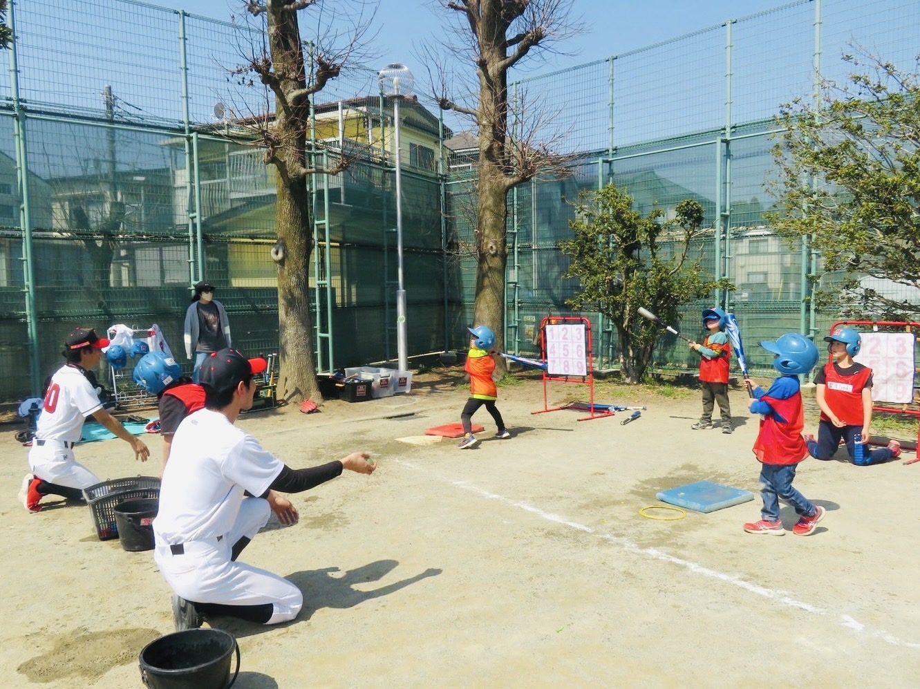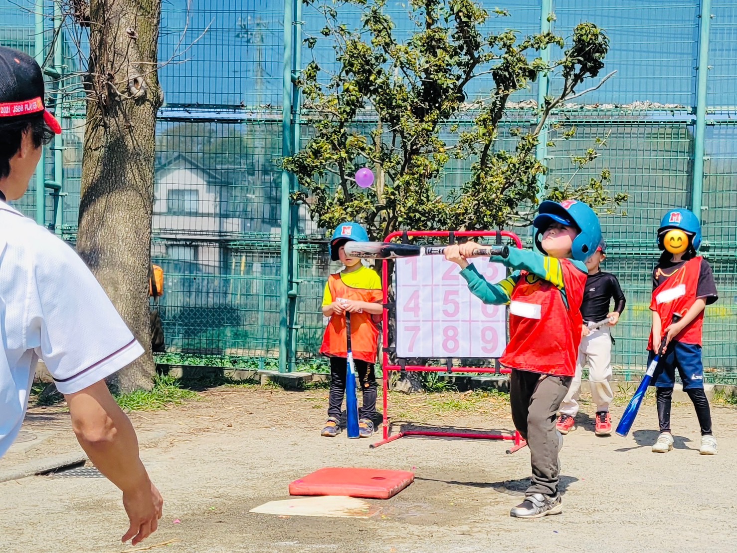 投げる/捕る/打つの基本メニューはもちろん ストラックアウト大会や水風船バッティングなどの楽しい企画や 5年生チームによる本格的なプレーのデモンストレーションも実施。