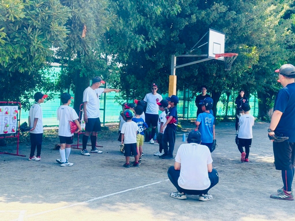 7/21(祝)、暑い中 朝からたくさんのお友達が集まってくれ、約2時間半 暑さに負けるコトなく”野球デビュー”を楽しんでくれました。木陰を活用し 休憩を小刻みにとり 水分補給しながらの活動でしたが、どのコも 投げて捕って打って走って、ワチャワチャと楽しんでくれました。親御様もお疲れ様でした!
